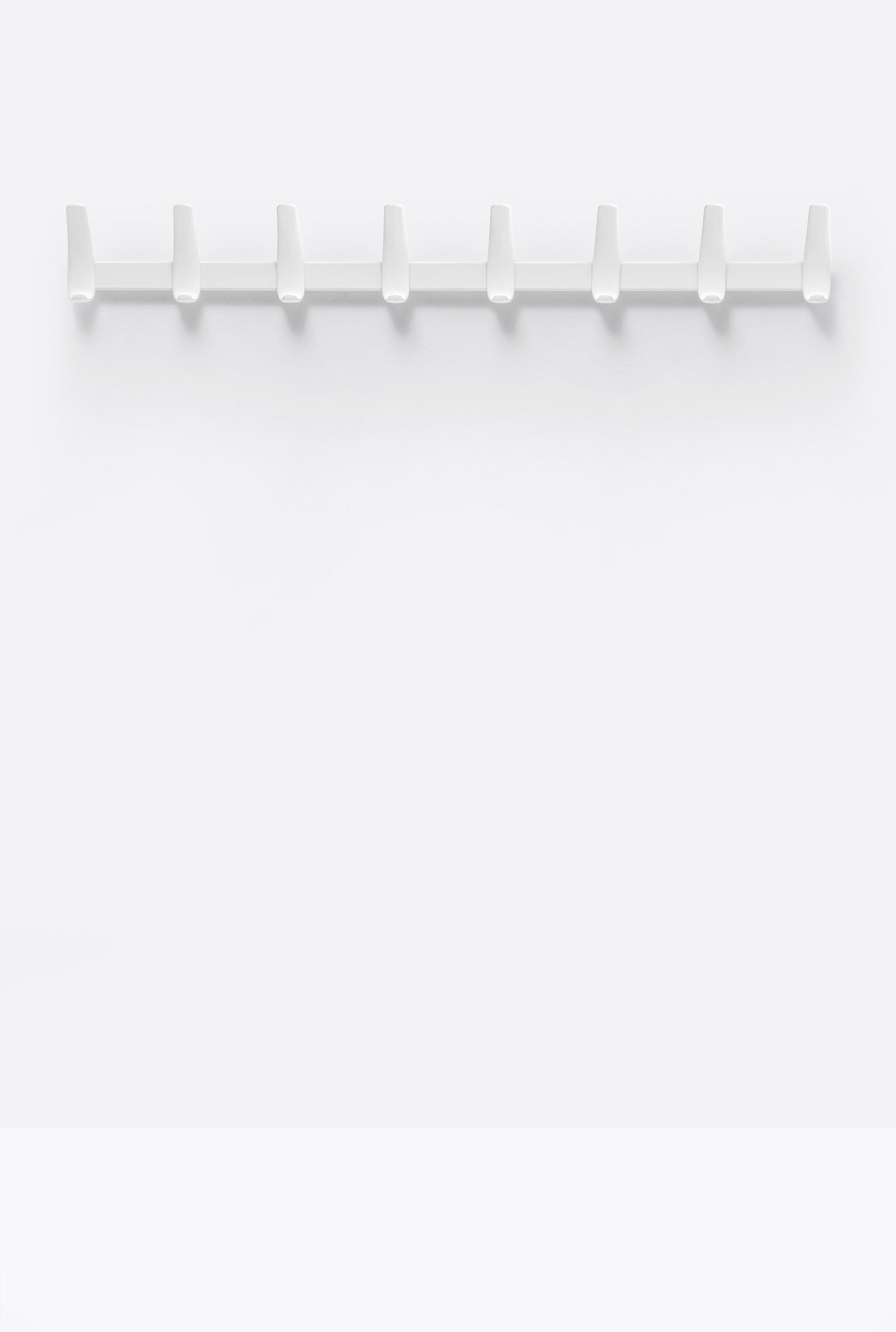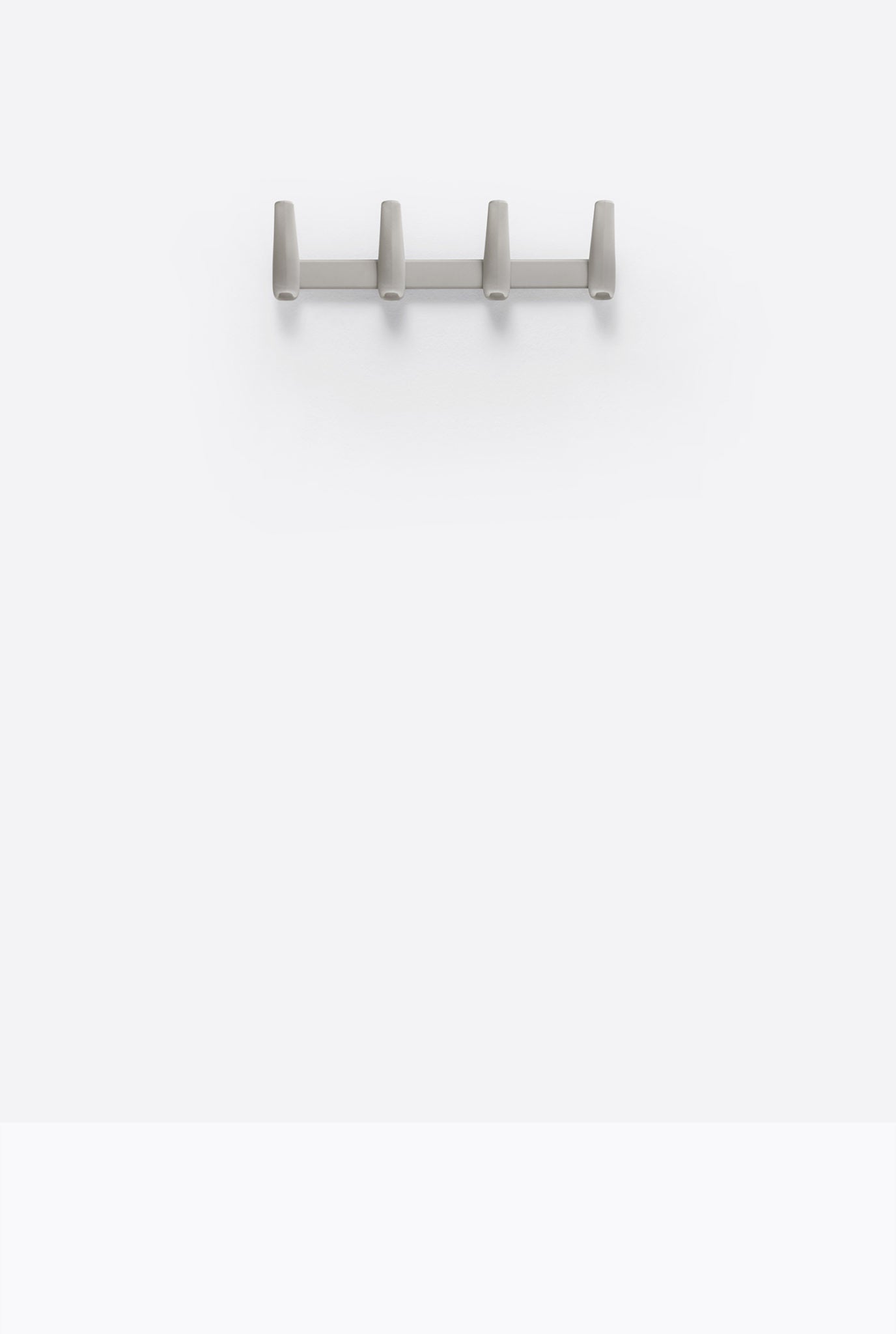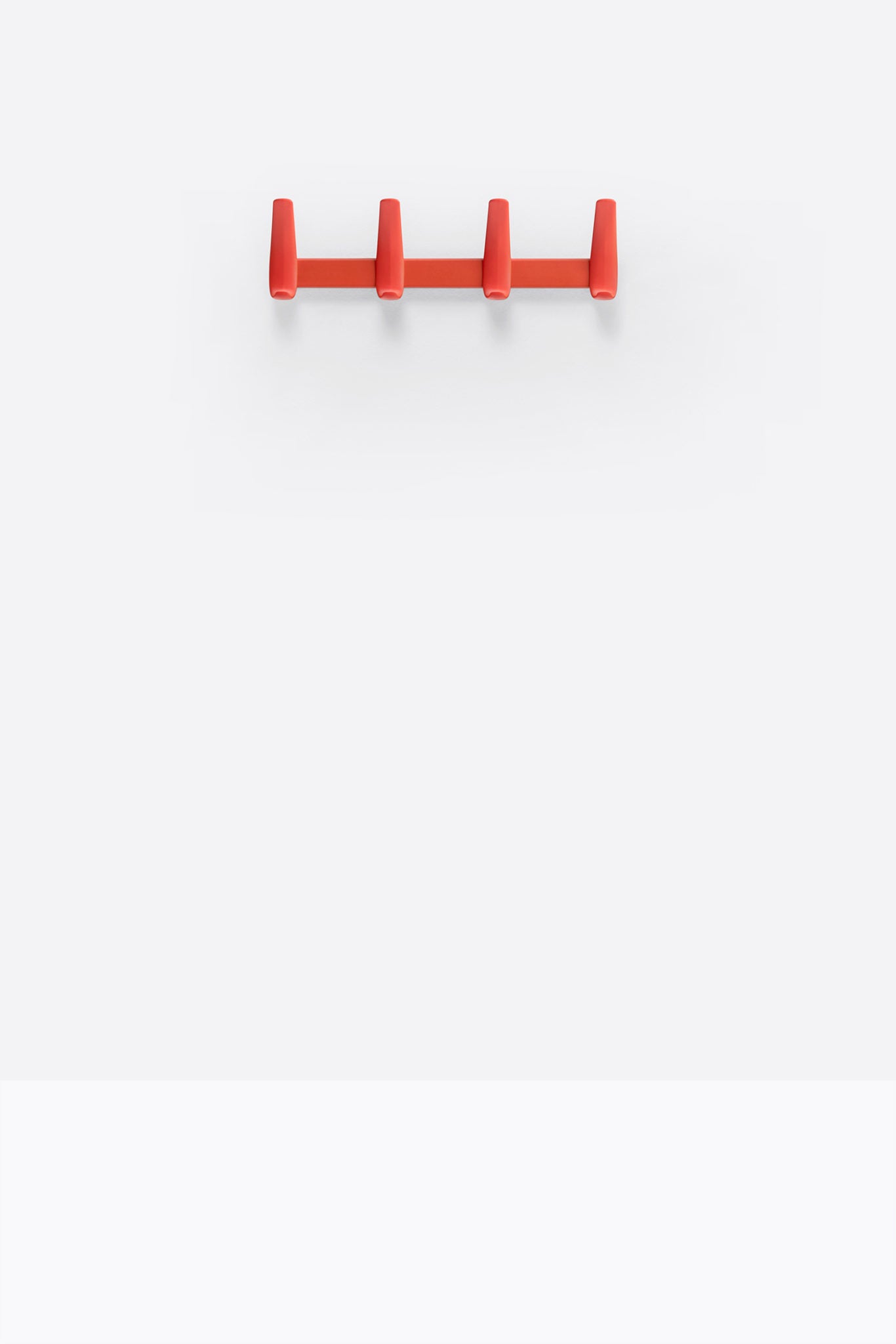Flag Wall è un appendiabiti da parete frutto della sintesi di forma e funzione. 4 ganci in polipropilene, caricato con fibra di vetro, sono fissati ad una barra in acciaio senza bisogno di viti, tramite un sistema ad incastro che ne rende estremamente veloce il montaggio.