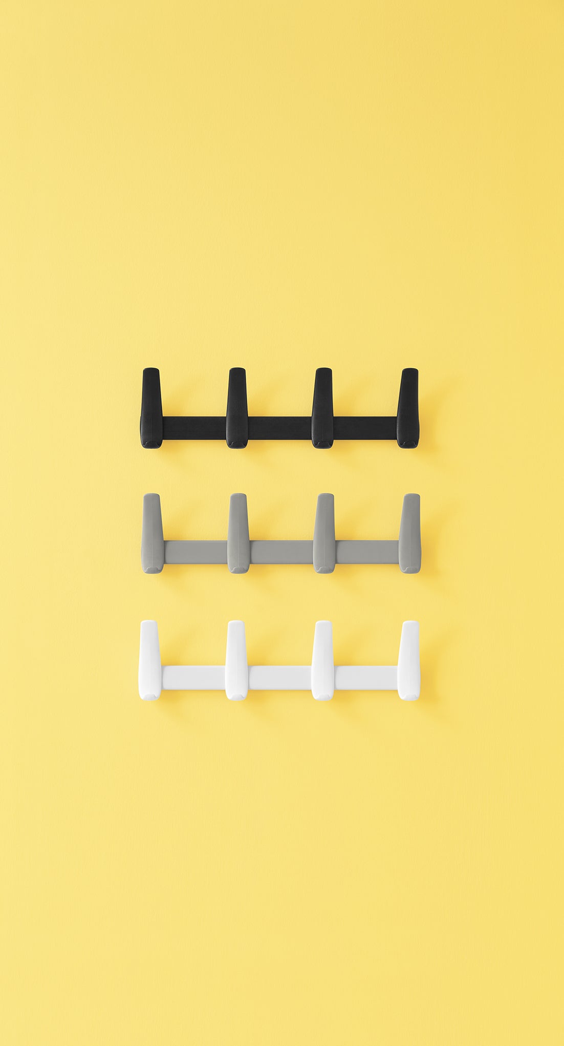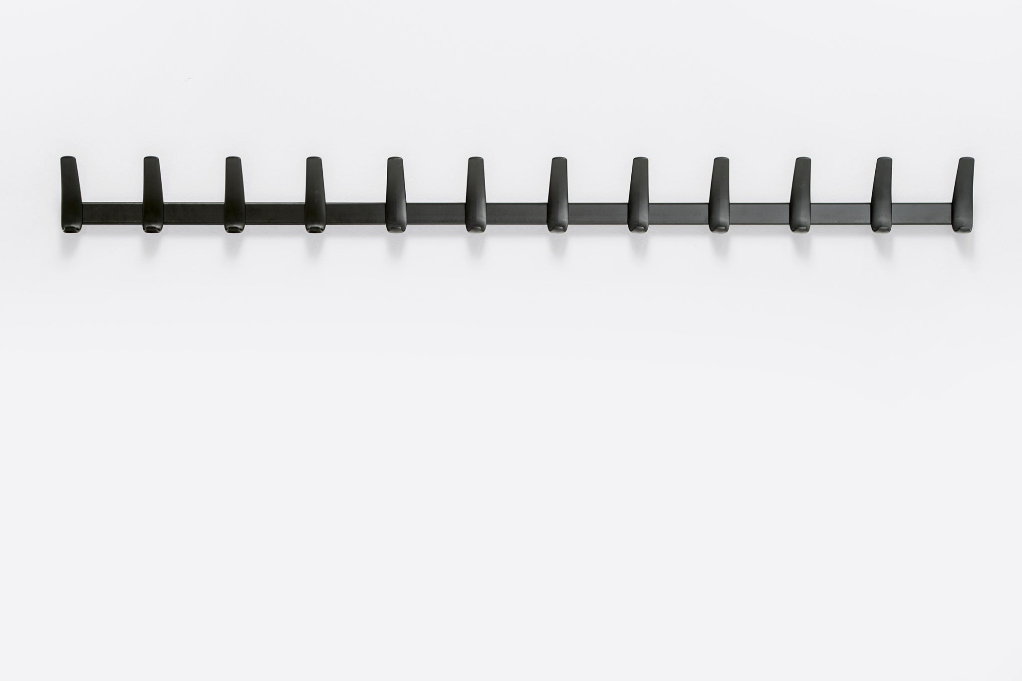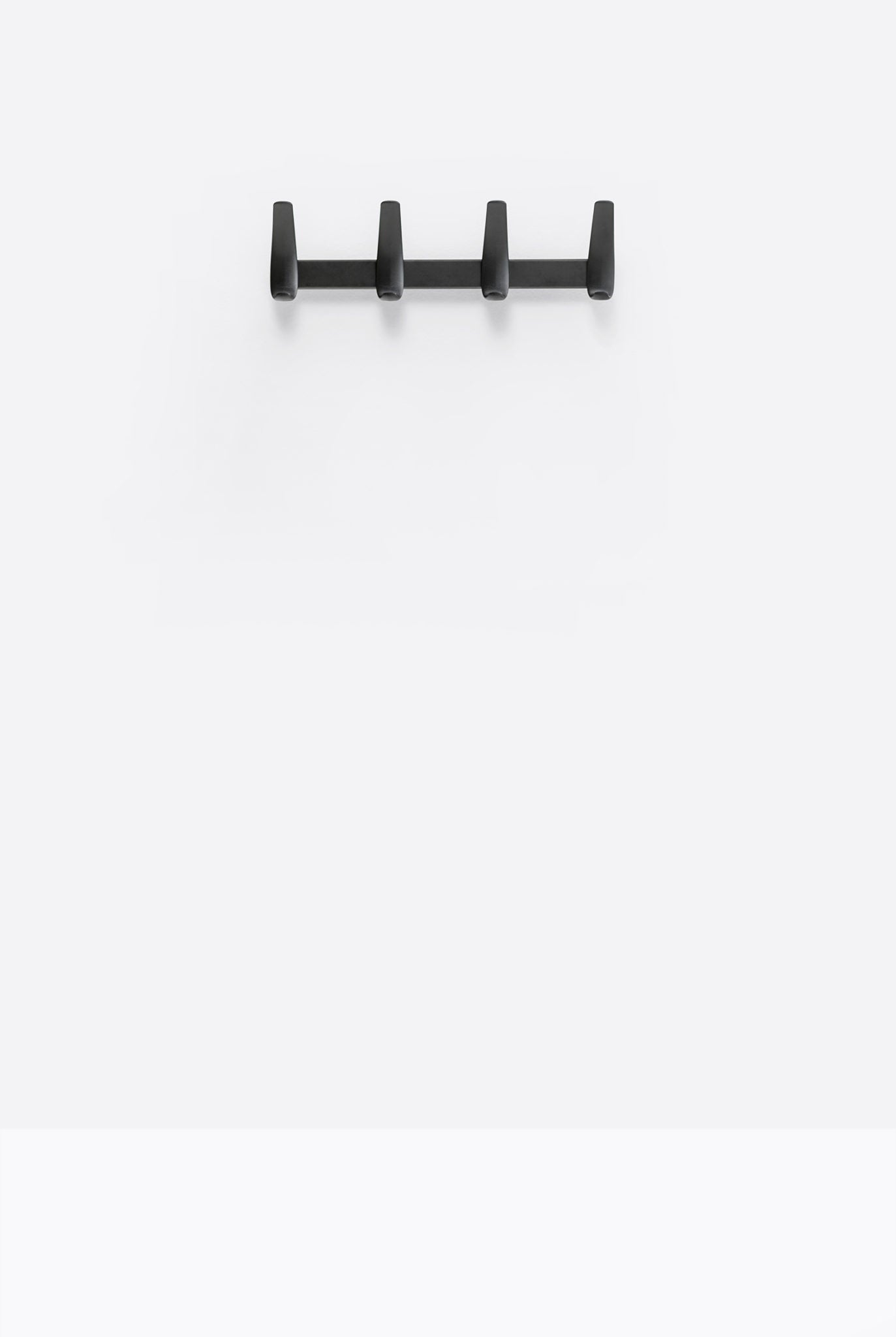 Flag Wall è un appendiabiti da parete frutto della sintesi di forma e funzione. 4 ganci in polipropilene, caricato con fibra di vetro, sono fissati ad una barra in acciaio senza bisogno di viti, tramite un sistema ad incastro che ne rende estremamente veloce il montaggio.
