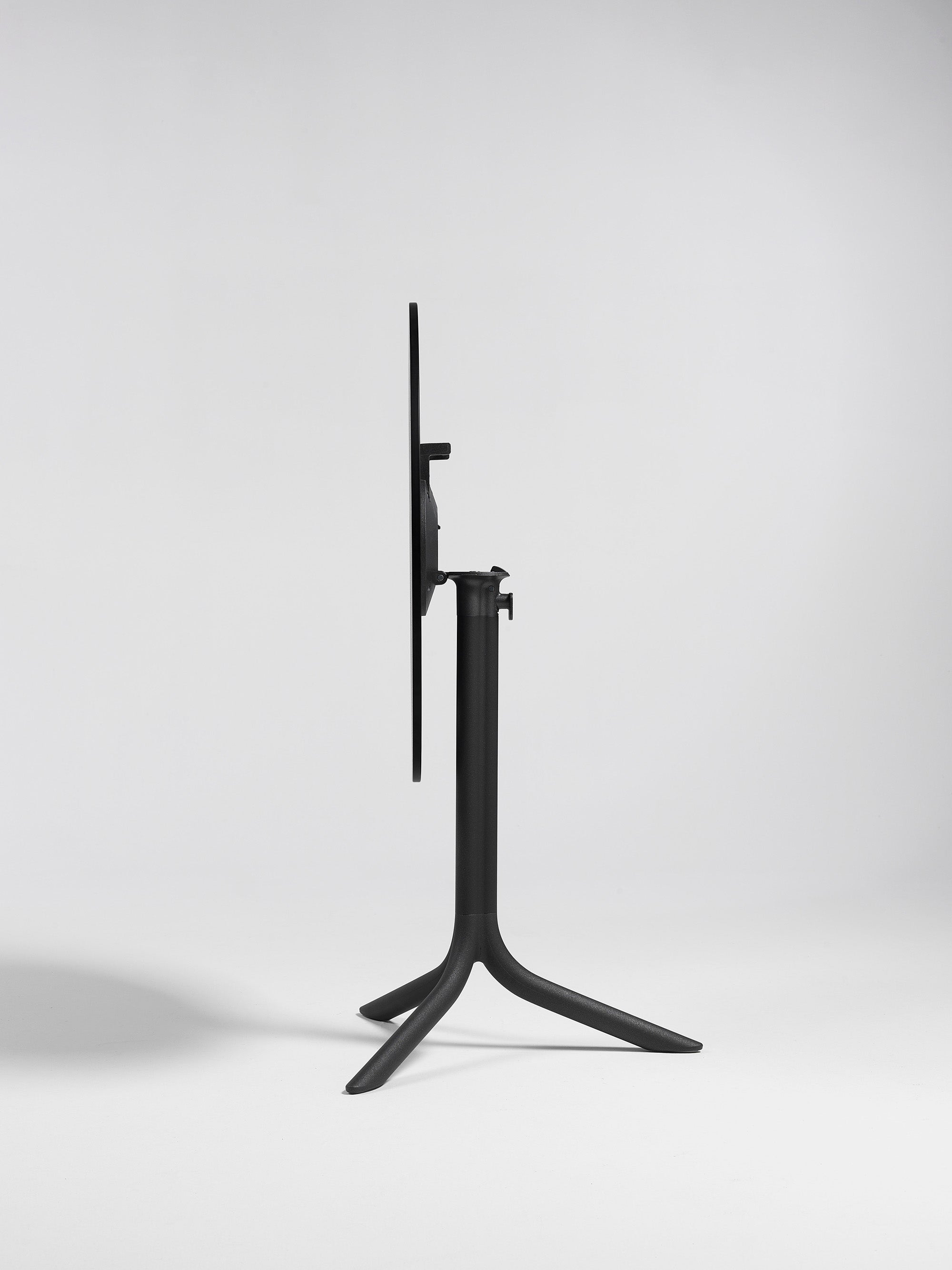 La Base Flute di Nardi, progettata da Raffaello Galiotto, è una base in alluminio verniciato pensata per ambienti outdoor e contract: pieghevole, impilabile orizzontalmente e compatibile con piani Ø 60-70 cm.