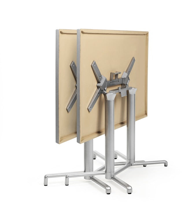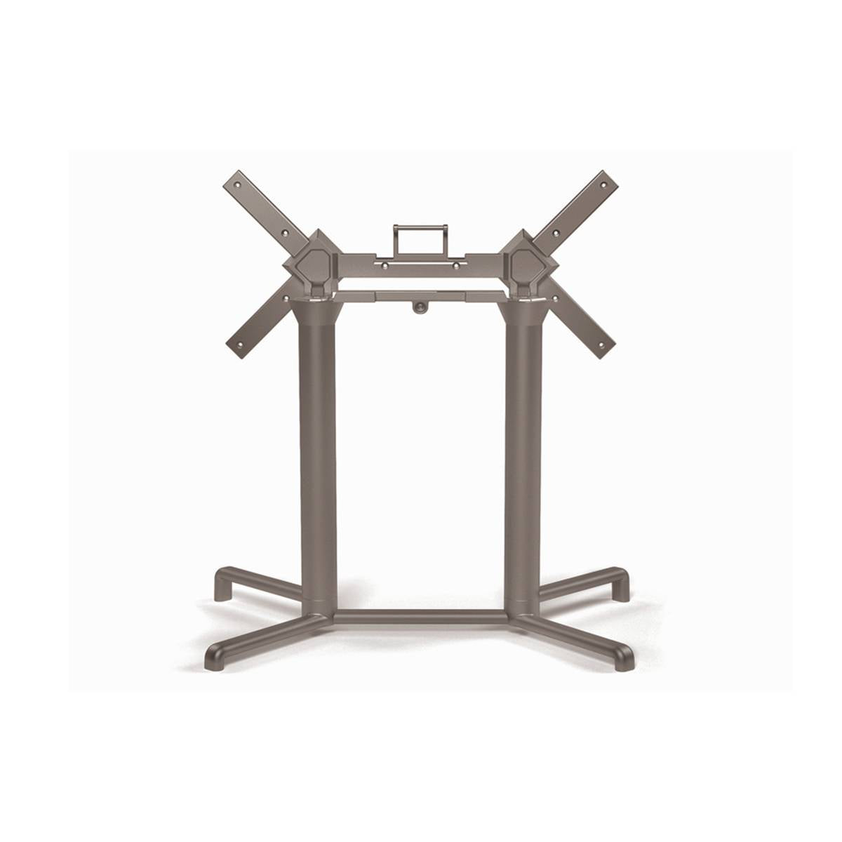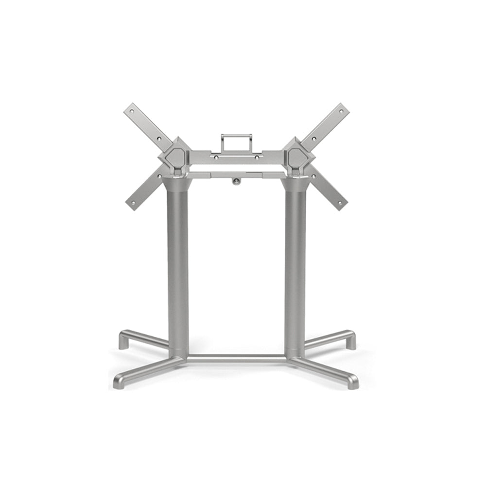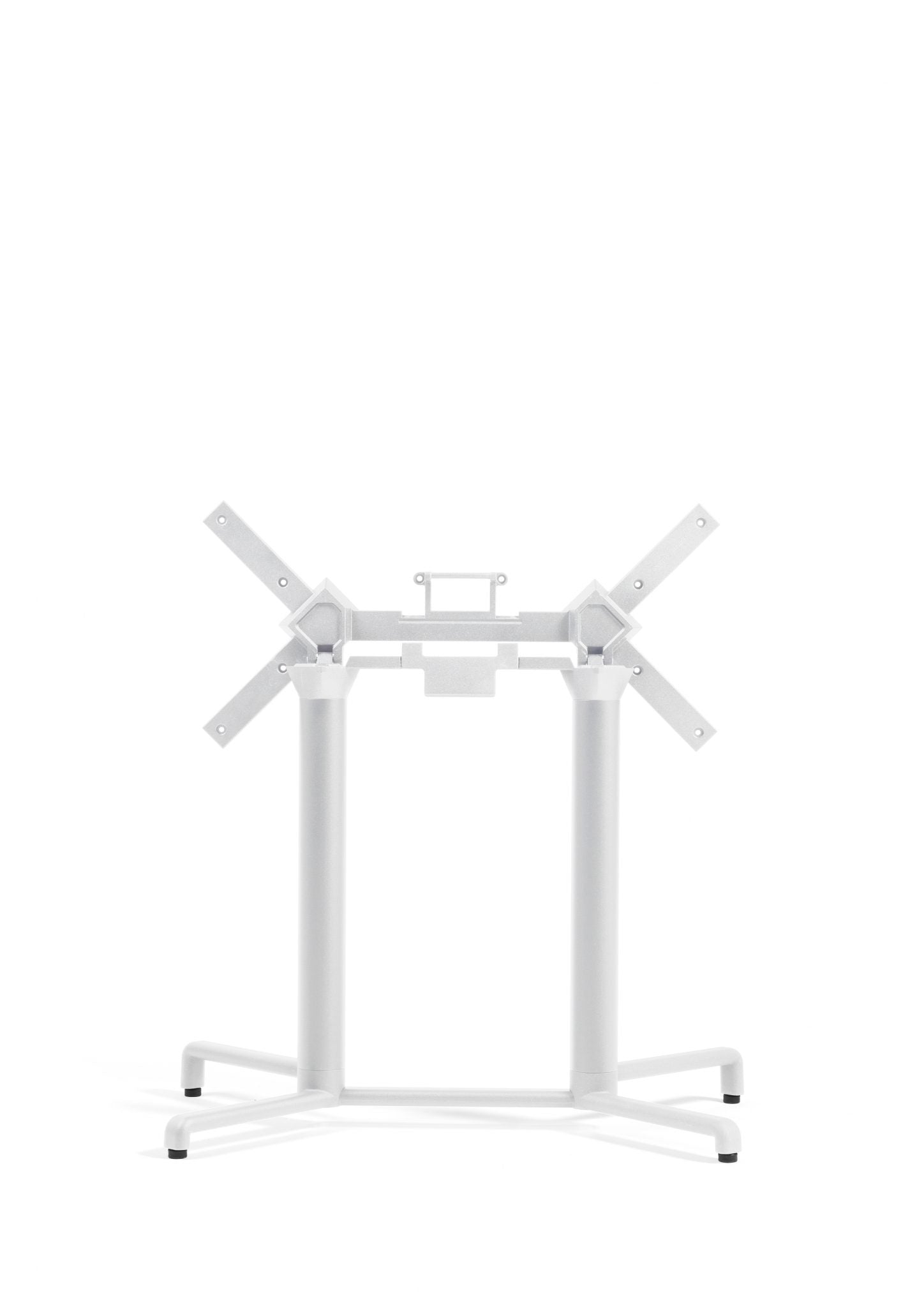 Base per tavolo pieghevole. Materiale: alluminio verniciato. Impilabile orizzontalmente. Dotata di piedini regolabili. Adatta per piani 110 x 70 - 120 x 80 cm.