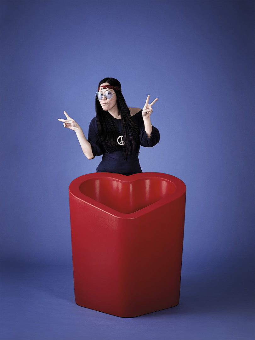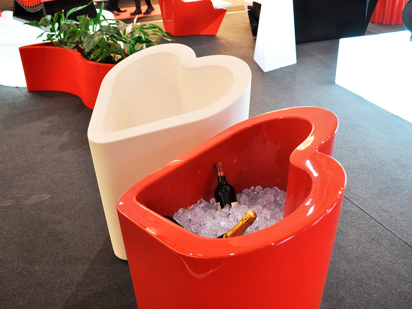 Il vaso colorato Mon Amour è un oggetto di design polifunzionale dalla romantica forma di cuore. Utilizzabile in ambientazioni indoor e outdoor, Mon Amour si adatta a diversi utilizzi: può essere un vaso colorato, un portabottiglie o un portaoggetti. Realizzato in polietilene, è disponibile nella versioni laccata, più elegante, e luminosa, più contemporanea.