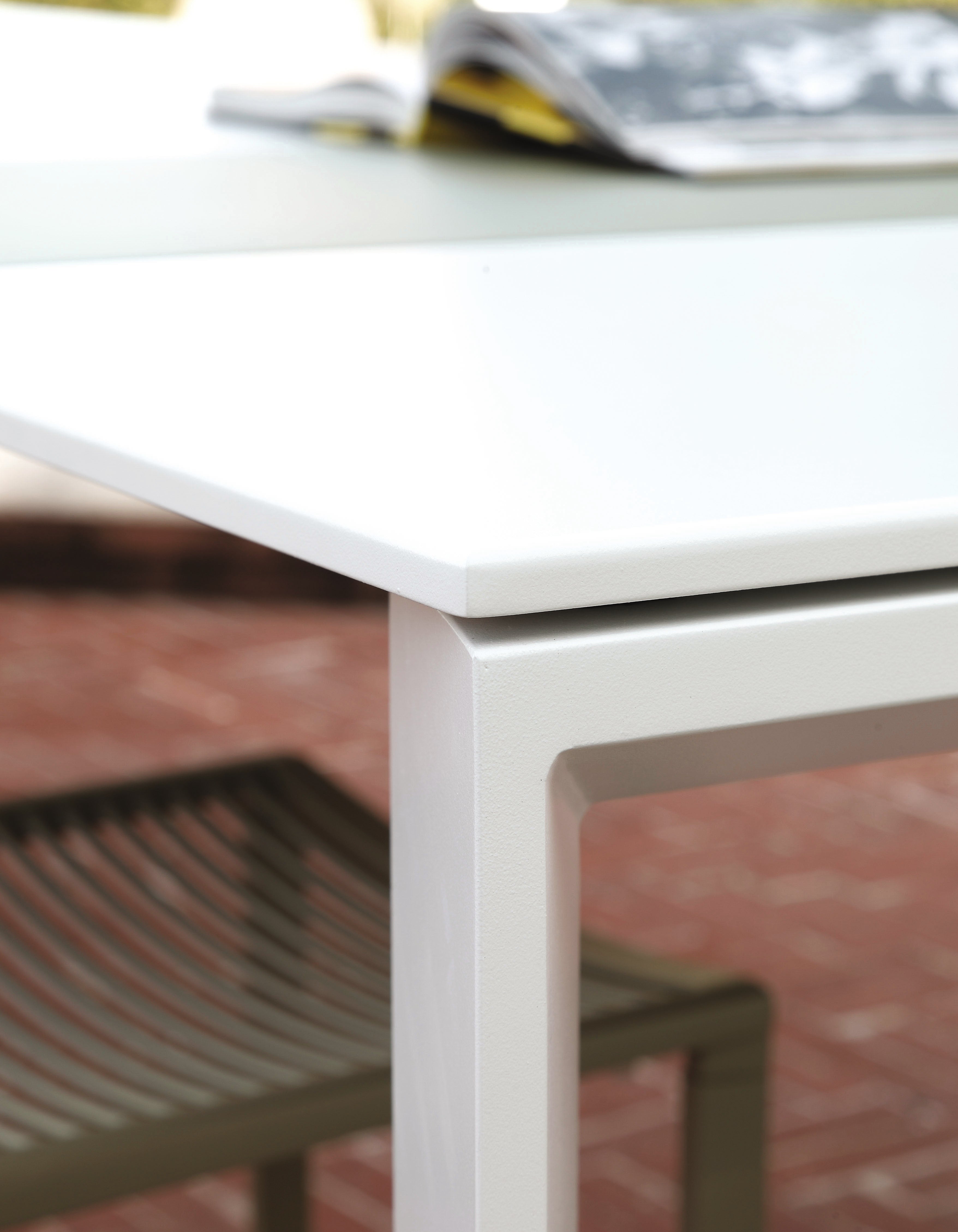 Struttura realizzata in alluminio pressofuso, estruso e laminato, con finitura in verniciatura a polvere (poliestere o poliuretanica), per garantire durata e resistenza agli agenti atmosferici.