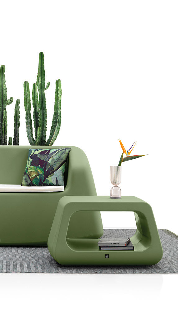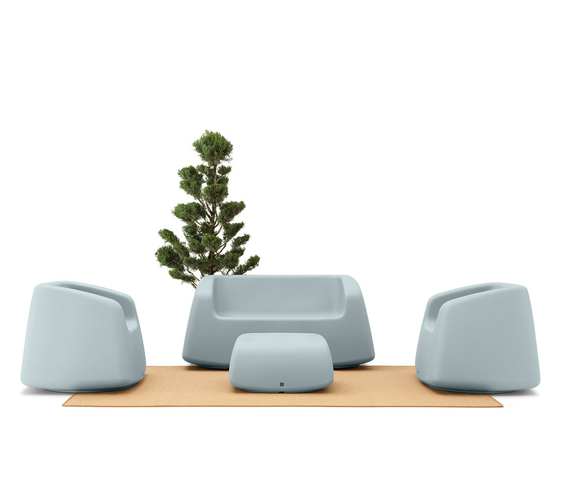 Un ensemble di design minimalista dalle forme accoglienti che dona carattere e originalità a ogni ambiente, sia esso indoor che outdoor. Ideale per creare atmosfere uniche e invitanti, questo set composto da divano e poltrona, dalla seduta ergonomica e comoda, e i loro accessori, come il tavolino e il pouf, trasforma qualsiasi spazio in un luogo accogliente e di grande personalità.