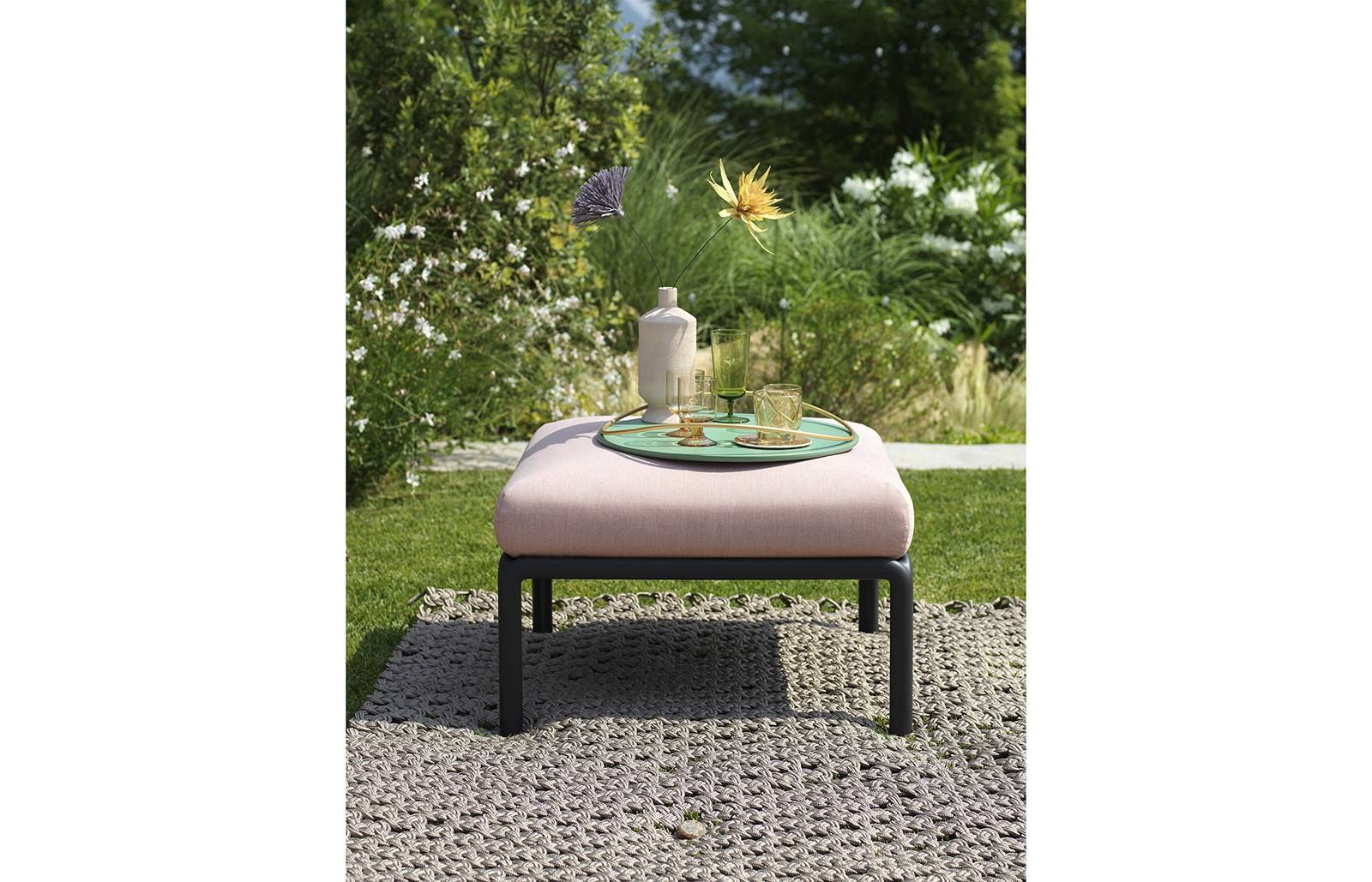 Disponibile in numerose varianti cromatiche tramite tessuto Sunbrella®, come Giungla, Avocado, Ghiaccio, Adriatic, Rosa Quarzo, Grigio Komodo e altri. I cuscini sono progettati per uso esterno: resistenti ai raggi UV e facili da rimuovere grazie alla zip.