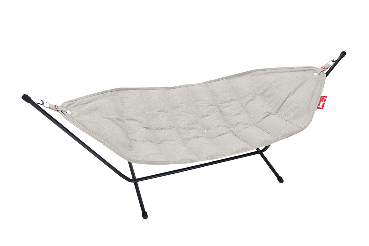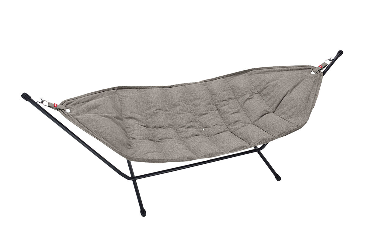 Il Fatboy Headdemock Superb è un’amaca deluxe con struttura autoportante (rack) che porta relax e stile ovunque, perfetta per uso outdoor. Con telaio robusto in acciaio verniciato nero, tessuto Olefin resistente all’acqua, allo sporco e ai raggi UV, riesce a sostenere fino a 150 kg. Misura generosa (circa 270 × 138 × 110 cm), include fodero / copertura e cuscino. Ideale per terrazze, giardini, hotel o qualsiasi spazio outdoor che richiede comfort, qualità e design.
