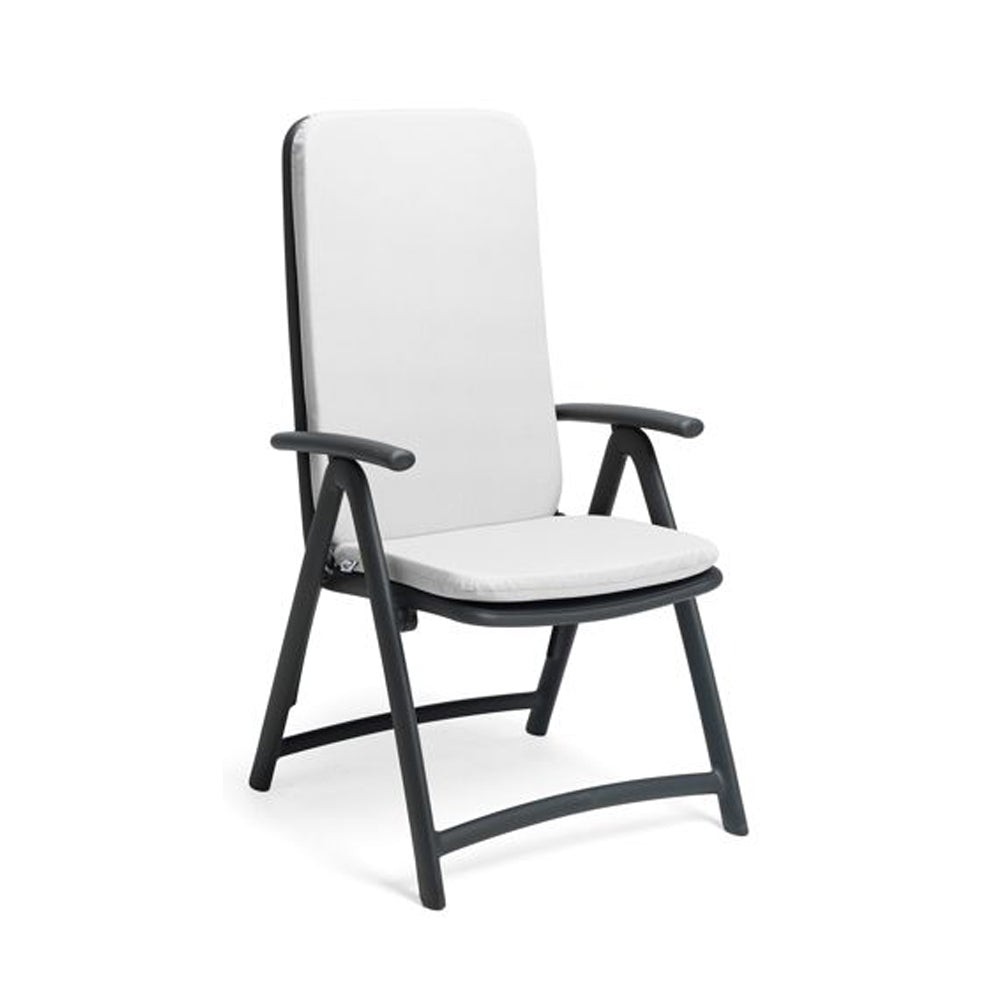 Cuscino per poltrona Darsena. Spessore 4 cm. Dotato di bottoni. RIVESTIMENTO Tessuto Acrilico - Tessuto 100% Olefin - Tessuto Acrilico Sunbrella® IMBOTTITURA Poliuretano espanso. Densità 28 kg/m3.
