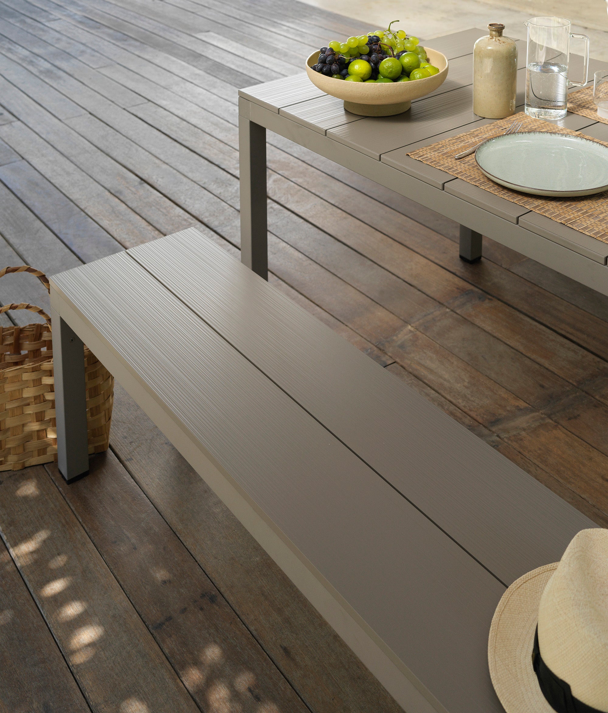 La Rio Bench Alu di Nardi è una panchina elegante pensata per ambienti outdoor, realizzata in alluminio verniciato. Con le sue linee pulite e la sequenza di doghe sulla seduta, invita alla convivialità e si integra perfettamente in giardini, terrazze, hotel e spazi contract.