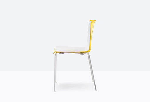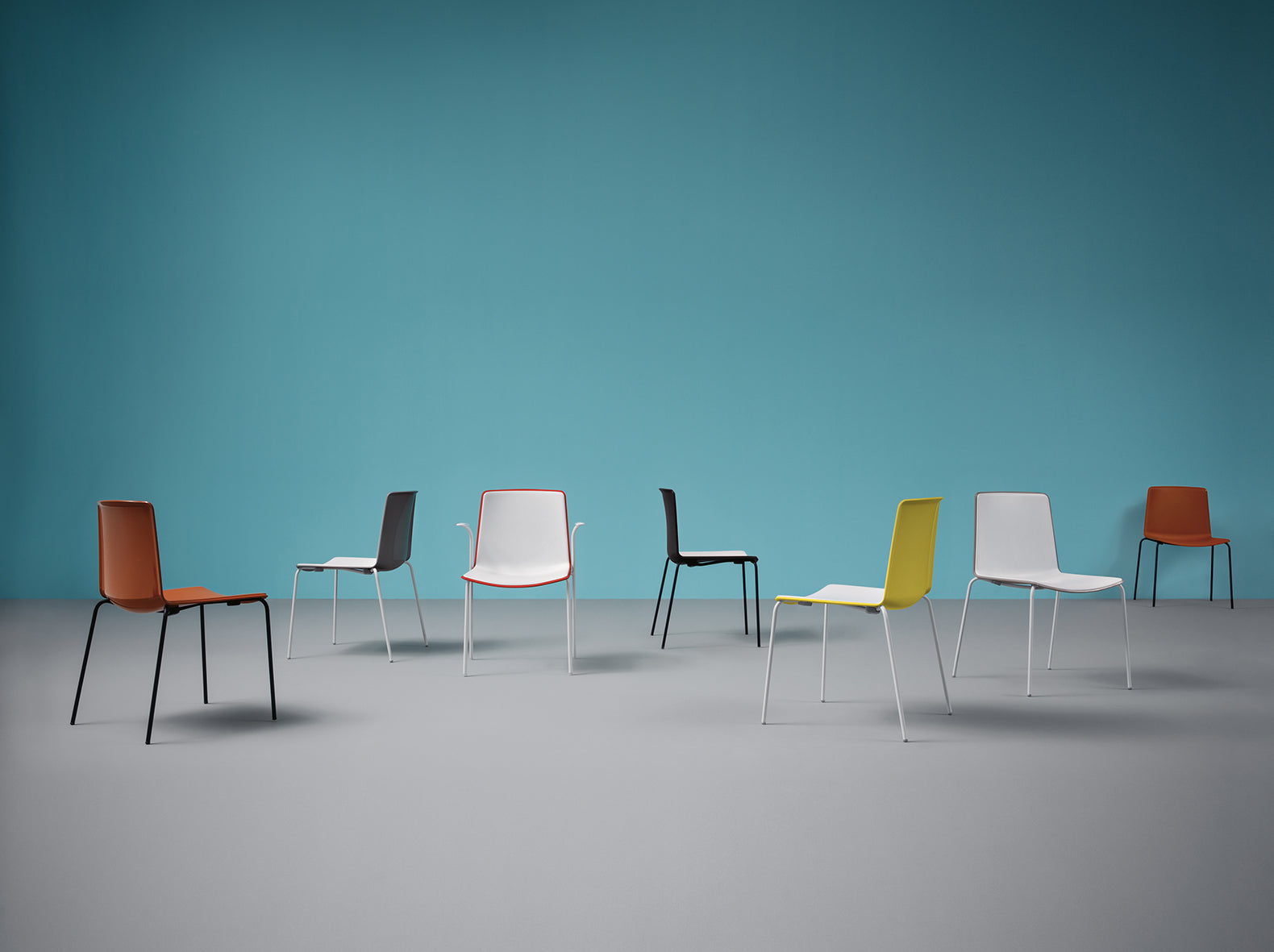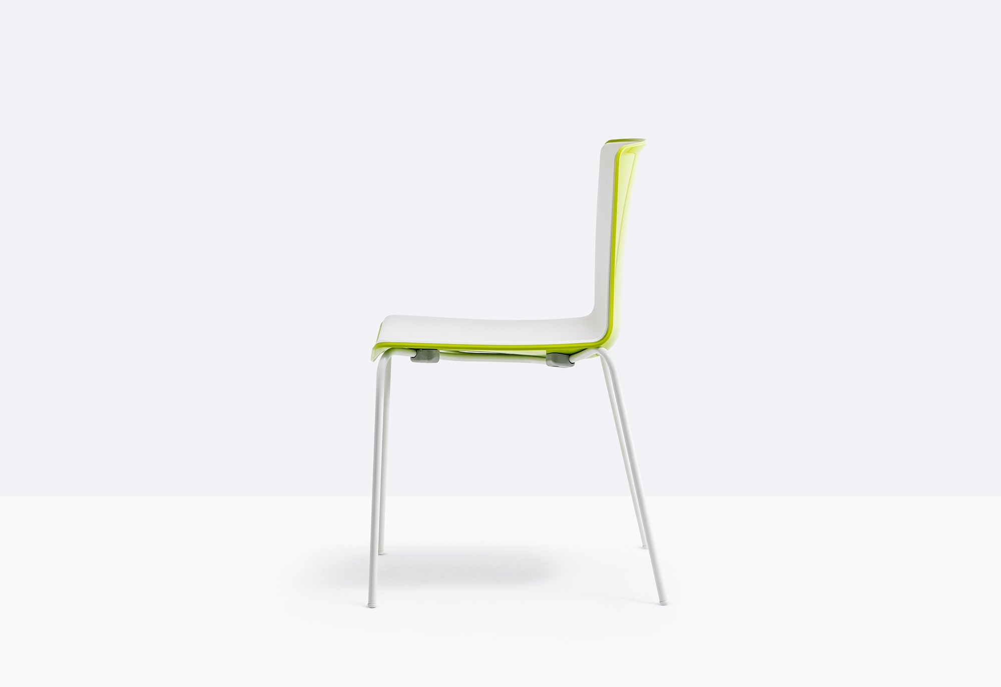 Tweet è una collezione di sedute che combina il disegno razionale e pulito della scocca, disponibile sia monocolore che nella versione bicolore (in quest’ultima la parte interna è sempre in polipropilene bianco antigraffio), ad un’ampia scelta di telai e finiture, per garantire la massima adattabilità negli ambienti contract e domestici.