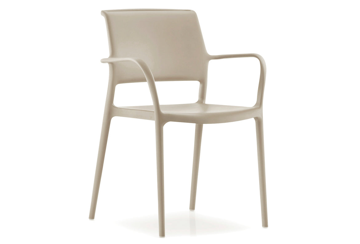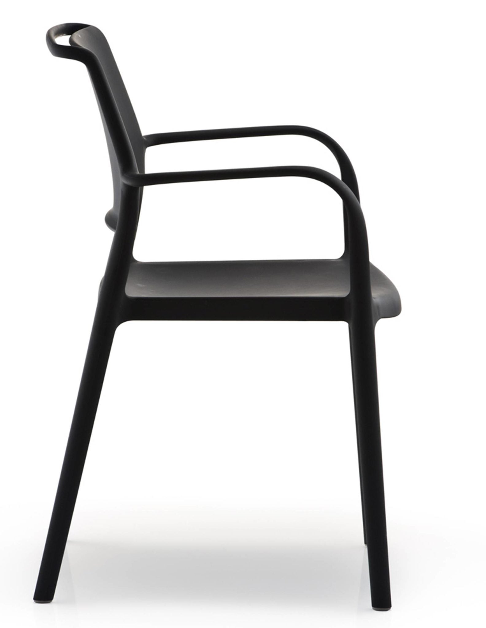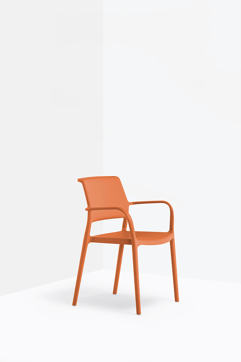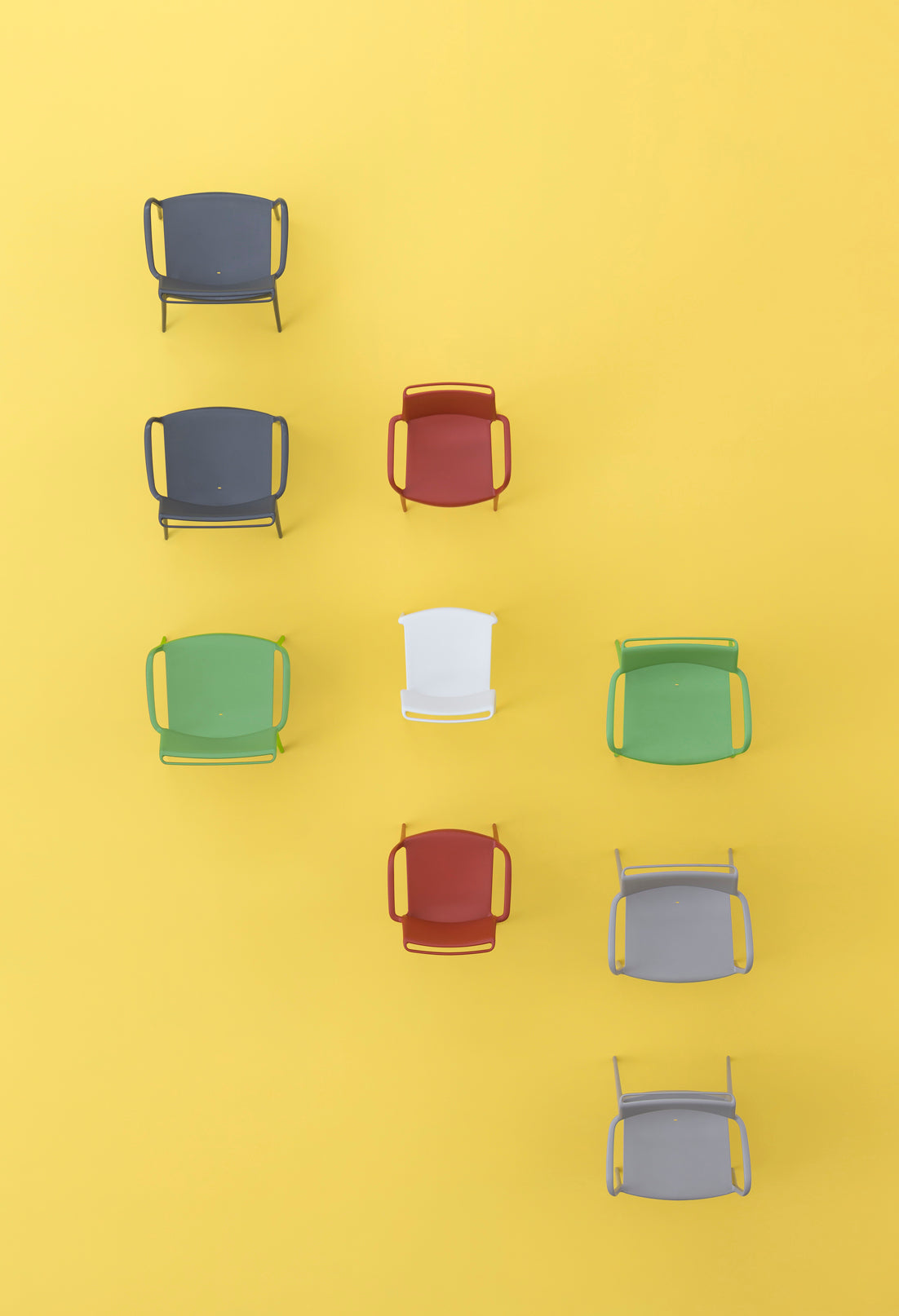Poltroncina in polipropilene caricato con fibra di vetro, adatta sia per indoor che outdoor. La struttura dello schienale forma nella parte alta una grande maniglia che ne facilita il sollevamento e lo spostamento e le conferisce un distinto carattere. Grazie alla forma affusolata delle gambe appare leggera ed elegante, pur essendo robusta e indeformabile. Impilabile.