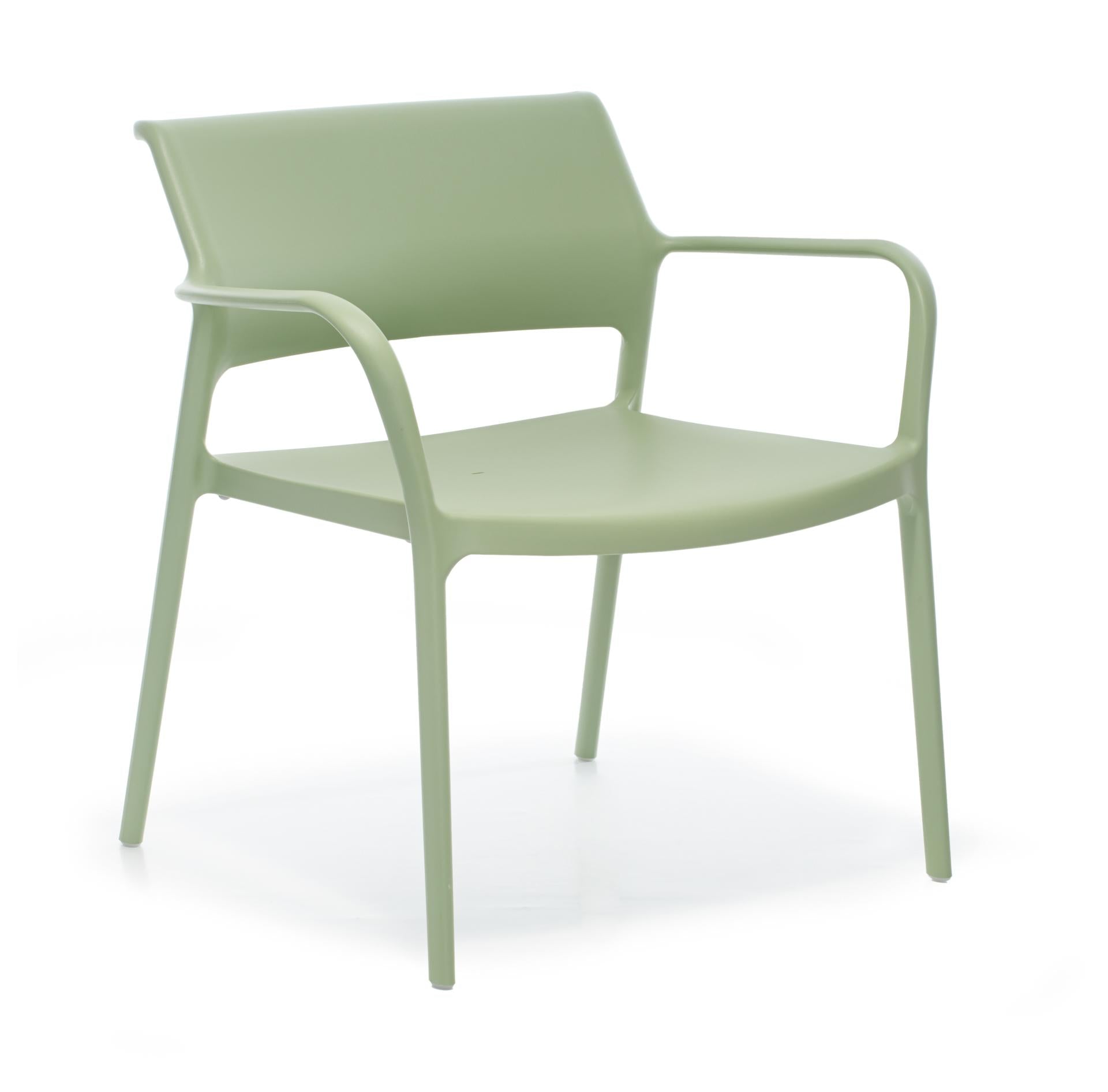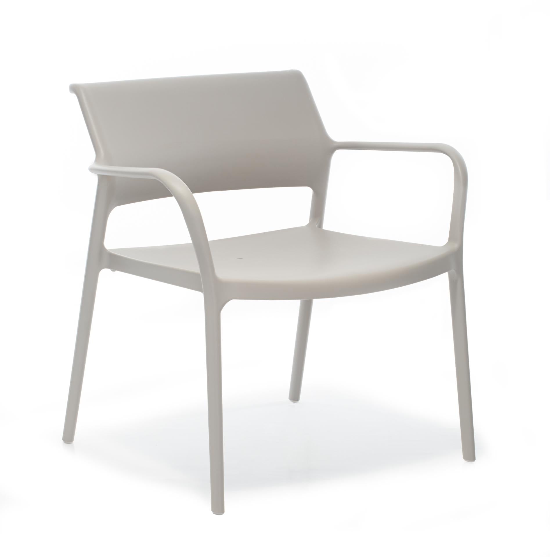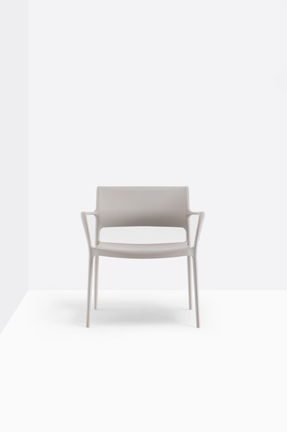 Poltroncina lounge, naturale estensione della poltrona, in polipropilene caricato con fibra di vetro, adatta sia per indoor che outdoor. La struttura dello schienale forma nella parte alta una grande maniglia che ne facilita il sollevamento e lo spostamento e le conferisce un distinto carattere. Grazie alla forma affusolata delle gambe appare leggera ed elegante, pur essendo robusta e indeformabile.