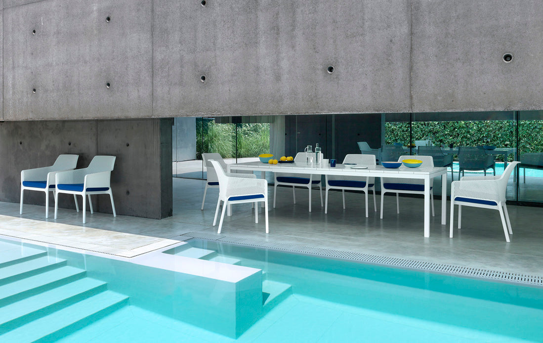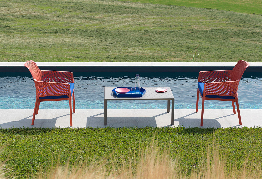 La Net Relax unisce design distintivo, comfort e durevolezza. È perfetta per ambienti esterni residenziali e contract che desiderano una seduta elegante, resistente ai raggi solari e agli agenti atmosferici, e semplice da manutenere.