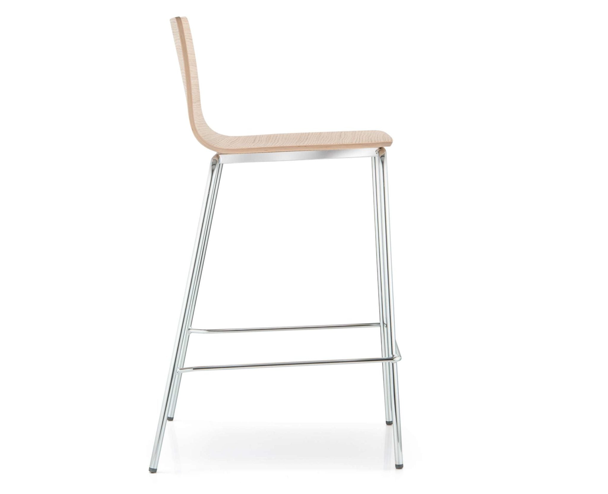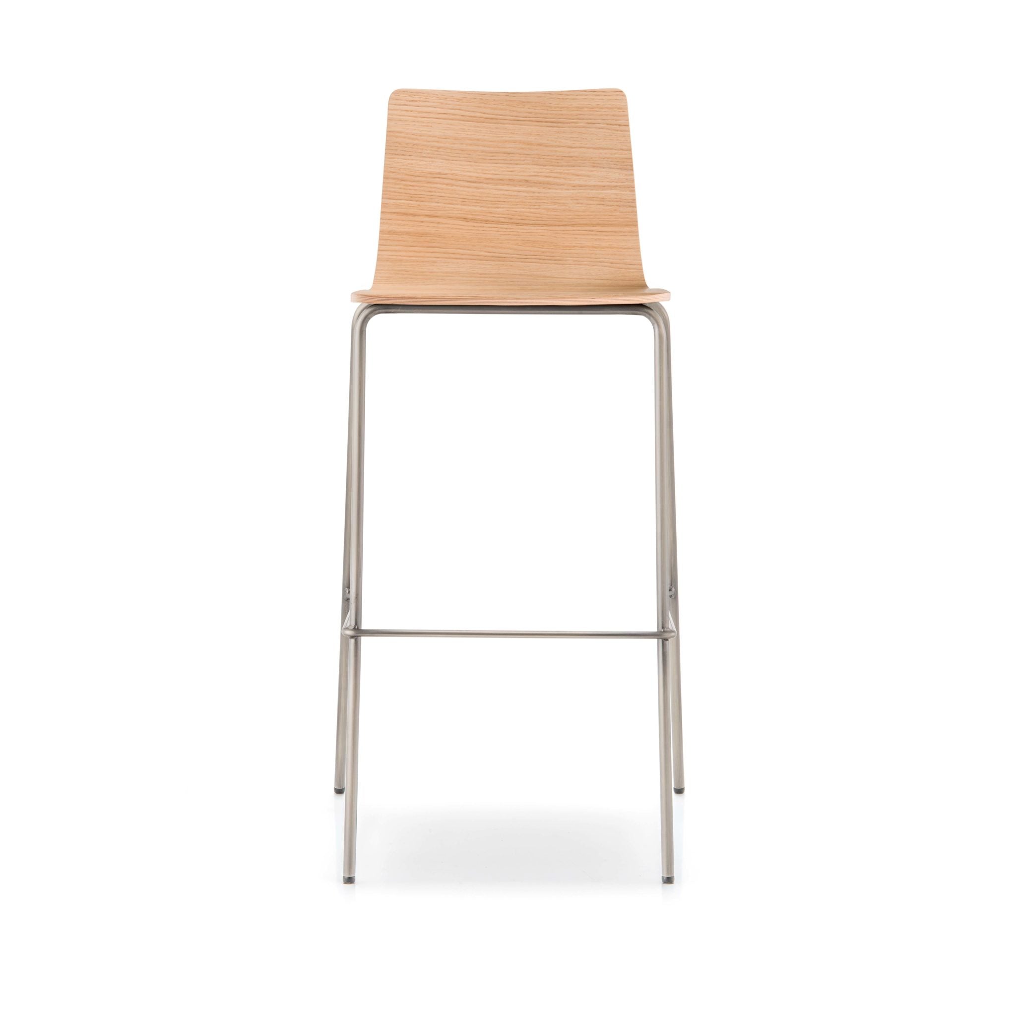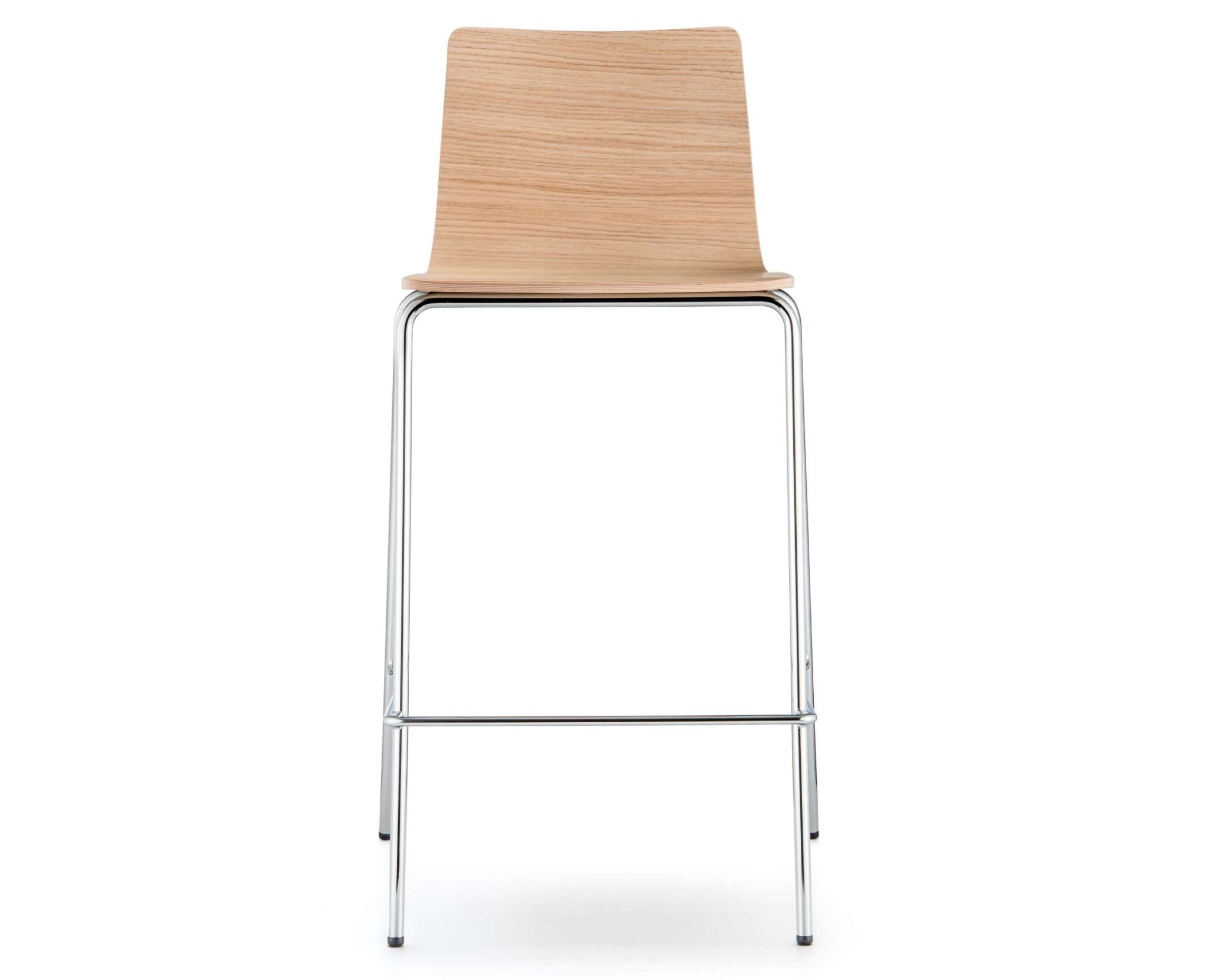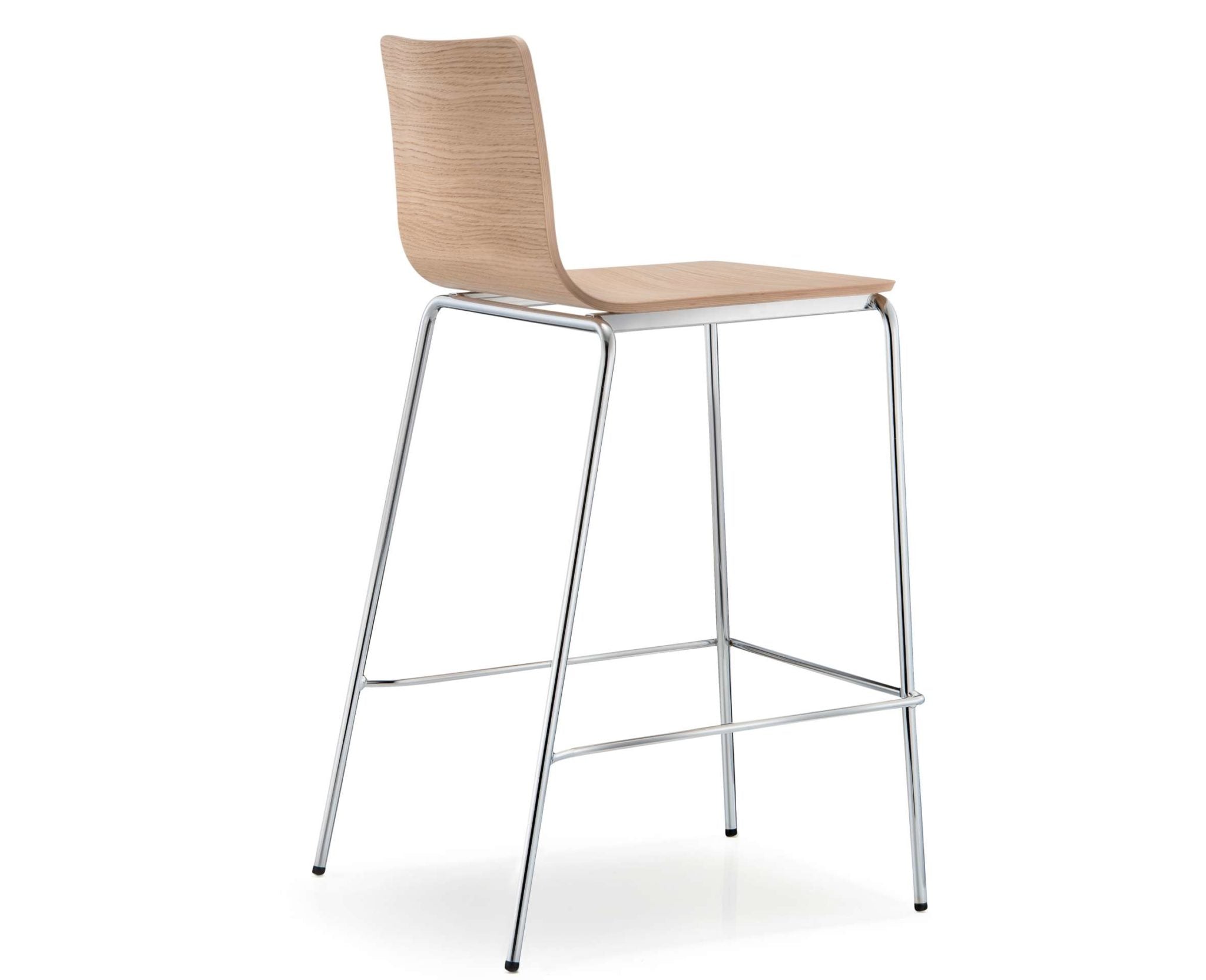 Inga deve il suo nome all’eleganza femminile nord-Europea. Sgabello con scocca in multistrato di rovere impiallacciato e struttura in tubo d’acciaio Ø 16 mm, cromato o verniciato.