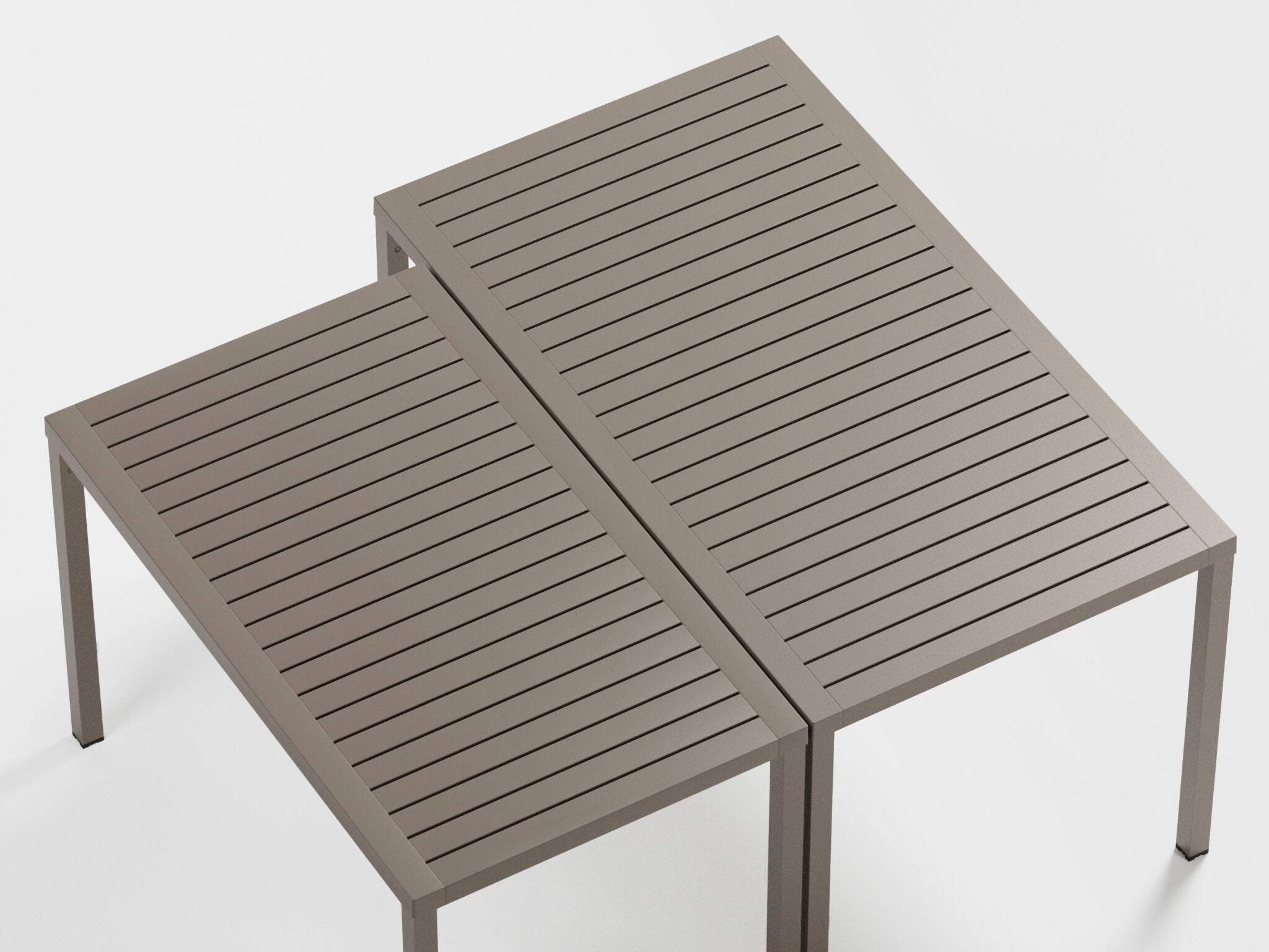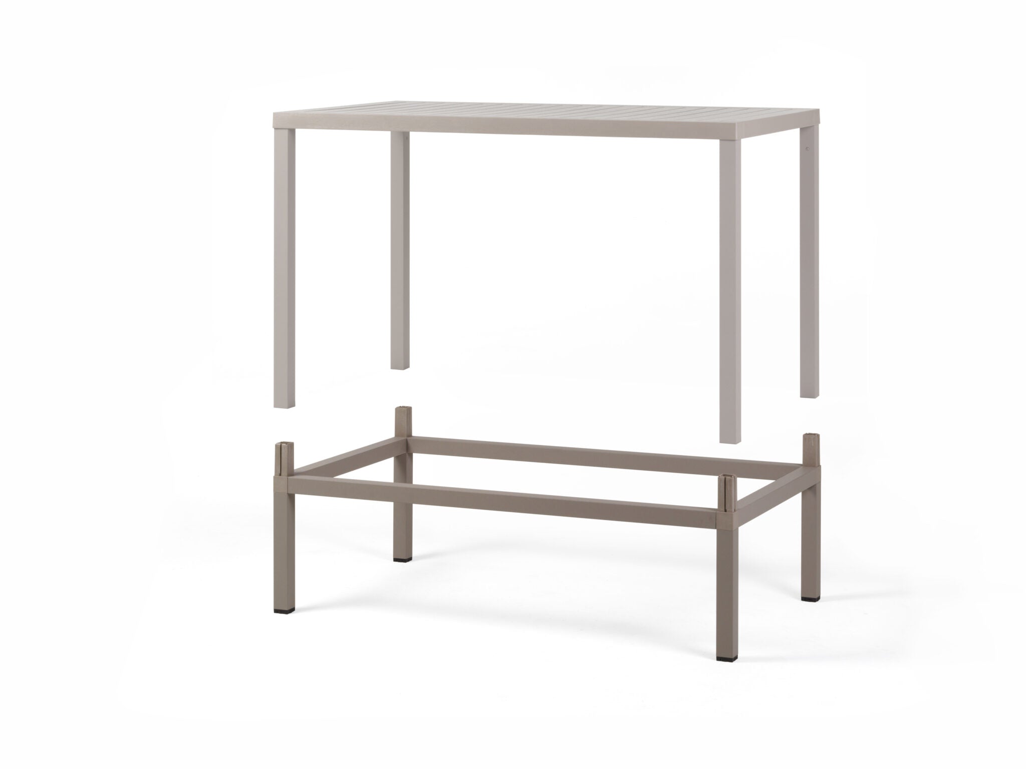 Sistema di rialzo per tavolo Cube 120×70 (da 75,5 cm a 107 cm). Materiale: alluminio verniciato. Montaggio facile e giuntura invisibile. Dotato di piedini regolabili.