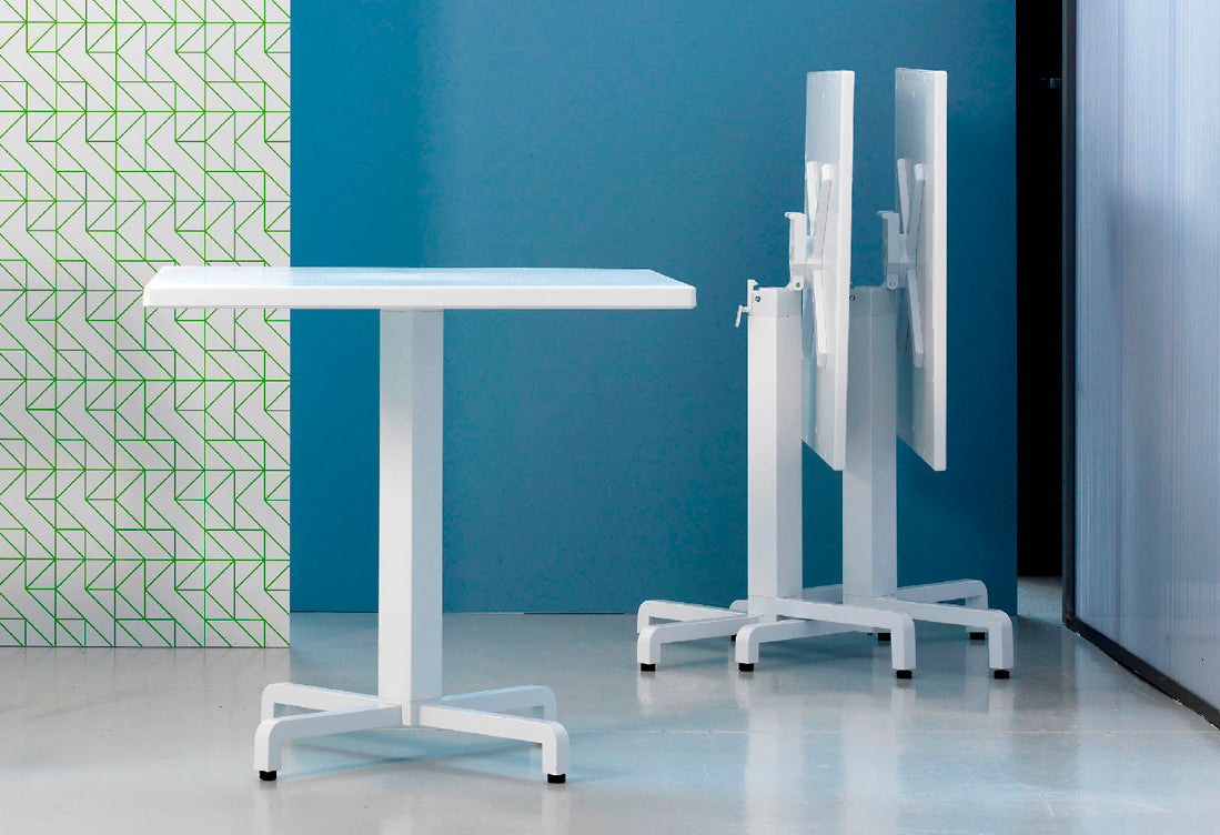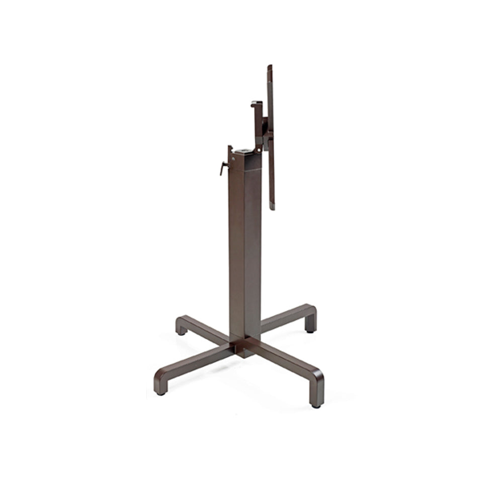 Base per tavolo pieghevole. Materiale: alluminio verniciato. Impilabile orizzontalmente. Dotato di piedini regolabili. Adatta per piani misure Ø 60 - Ø70 - Ø80 - 60 x 60 - 70 x 70 - 80 x 80 cm.